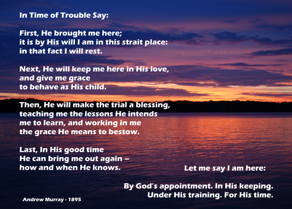 Inspired by the writings of Andrew Murray: "In Time of Trouble Say" Reference 1; Reference 2